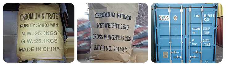 硝酸鉻·九水為紫紅色有潮解性結(jié)晶,加熱到125.5℃時(shí)分解, 熔點(diǎn)60℃。易溶于水,溶于乙醇,丙酮和無(wú)機(jī)酸。其水溶液加熱時(shí)呈綠色,冷卻后又迅速變?yōu)榧t紫色。有腐蝕性,能引起灼傷。與易燃物品接觸能引起燃燒。